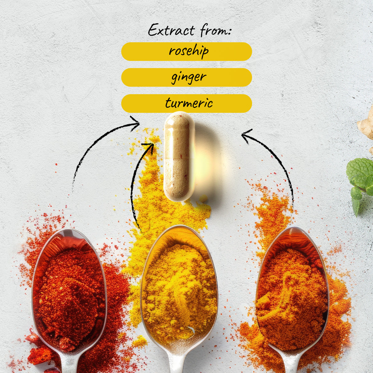 Το μοναδικό συμπλήρωμα με φυσική βιταμίνη C από άγριο τριαντάφυλλο, ενισχυμένο με αντιφλεγμονώδη κουρκουμά και ενεργοποιητικό τζίντζερ – για απόλυτη απορρόφηση και μέγιστα αποτελέσματα
